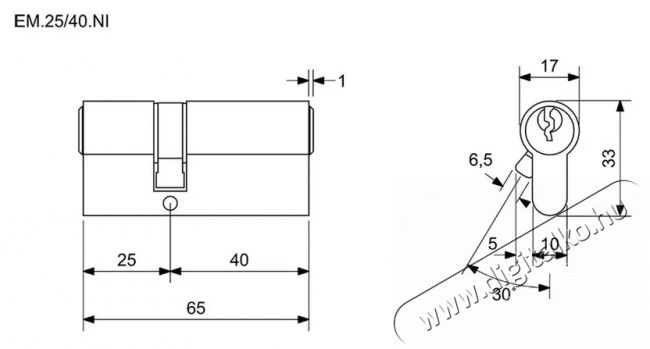 A keresett Richter Czech EM.25/40.NI cilinderbetét legfontosabb jellemzői