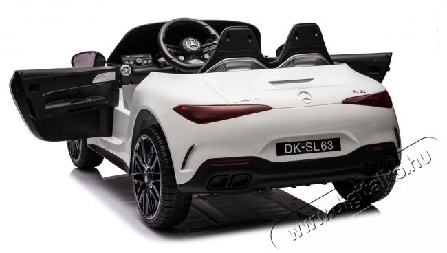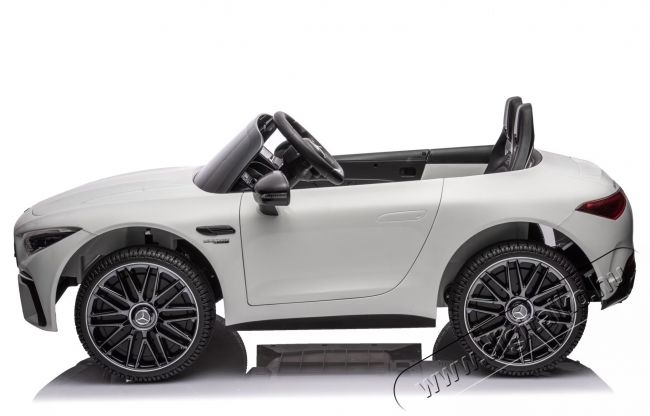 Mappy Mercedes SL63 AMG elektromos autó, EVA kerekekkel, bőrüléssel, fehérA gyerekeknek szánt elektromos autó, távirányítóval, a Mercedes SL63 AMG felejthetetlen pillanatokat ad gyermekének barátaival. Egyszerű, töltse fel az akkumulátorokat, kapcsolja be a gyújtást, indítsa be az autót és kezdődhet a móka. Sebesség egyenesben, kanyarok, fékezések, hátramenetek, minden lehetséges a Mappy Mercedes SL63 AMG elektromos autóval. Bármit is csinál, a szórakozás mindenesetre garantált. Ha a kicsi még nem tudja kezelni a „kereket”, a mellékelt távirányítóval irányíthatja az autót.