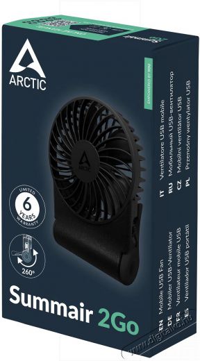 ARCTIC Summair 2Go Black Az ARCTIC Summair 2Go ventilátor egyetlen feltöltéssel akár hihetetlenül hosszú, 77 órás üzemidőt biztosít a nagy teljesítményű, 5000 mAh-s cserélhető akkumulátorának köszönhetően. A 600 és 4000 fordulat/perc között fokozatmentesen állítható fordulatszám segítségével eldöntheted, hogy egy gyengéd szellőre, vagy nagy hűtési teljesítményre van szükséged, és ennek megfelelően szabhatod meg ventilátor sebességét. Kompakt méreteinek és alacsony, mindössze 230 g-os súlyának köszönhetően ideális társ utazáshoz, irodába, vagy akár tömegközlekedéshez.