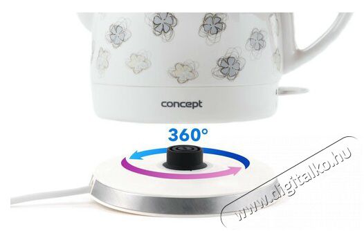 Még sosem volt ilyen egyszerű összepárosítani a művészetet és a funkcionalitást. Hála ennek a cseh CONCEPT márkájú vízforraló kannának Önnek biztosan sikerül. Ez a visszafogott virágmintás díszítésű kanna sok konyha díszévé válhat. A 0,8 liter térfogatú kerámia tartályra ráadásul nem jellemző az a jellegzetes szag, amit egy műanyag kannánál érezhetnénk. Biztonságos használat érdekében a vízforraló automatikus kikapcsolás funkcióval van felszerelve.