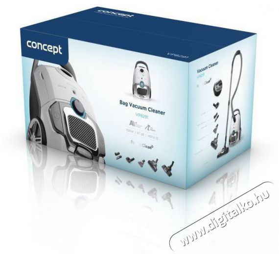 A Concept VP8291 zsákos porszívó nagy szívóteljesítménnyel és rendkívül alacsony, 67 dB-es zajszinttel működik. 700 W-os teljesítményének köszönhetően a zsákos porszívó alacsony energiafogyasztás mellett is biztosítja a különböző felületek tökéletes tisztítását.