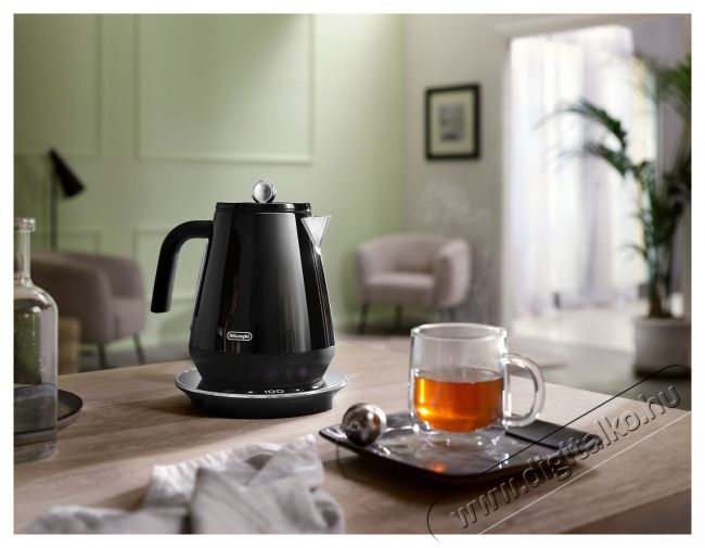 De`Longhi Eclettica SpecialTea KBY2011.BK vízforralóA De`Longhi Eclettica SpecialTea KBY2011.BK vízforraló elegáns segítőtárs, amely minden teafőzést vagy kávékészítést kellemes rituálévá varázsol. A nagy, 1,7 literes kapacitásnak köszönhetően könnyedén kiszolgálja a családot vagy a vendégeket. A digitális vezérlés lehetővé teszi, hogy pontosan beállítsd az italodhoz szükséges hőmérsékletet – 40 és 100 °C között. A fényes rozsdamentes acélból készült modern kialakítás krómozott részletekkel stílusosan kiegészíti bármelyik konyhát. És ha nem szeretnél azonnal újratölteni? A „keep warm” funkció akár 30 percen át melegen tartja a vizet, így mindig minden készen áll. Stílus, funkcionalitás és kényelem – épp azt nyújtja, amit egy vízforralótól elvársz.